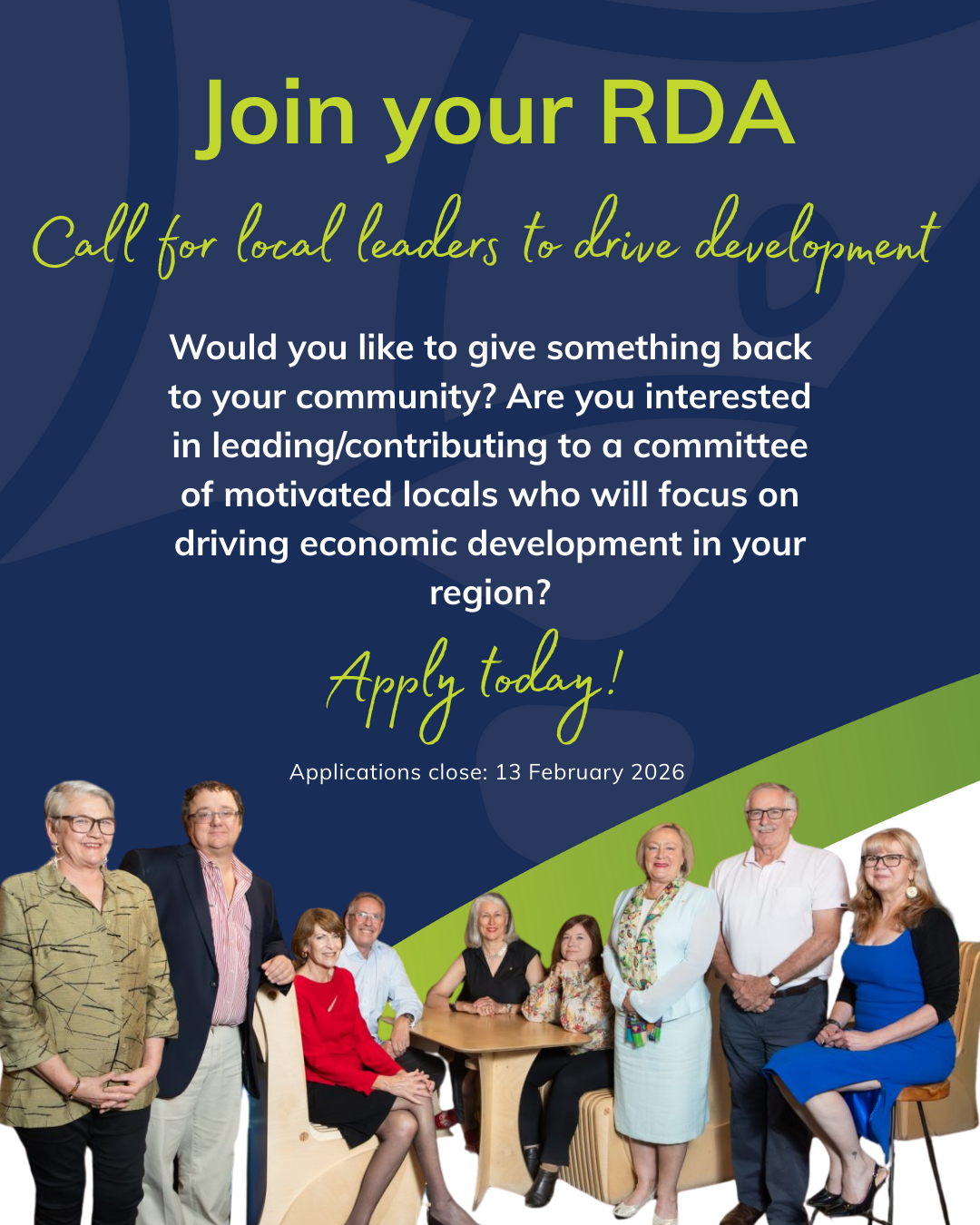 RDA Committees are vital promoters for their state/region. They facilitate investment in people, places, services and industries and local economies and work with stakeholders to support delivery of Australian Government’s strategic priorities.