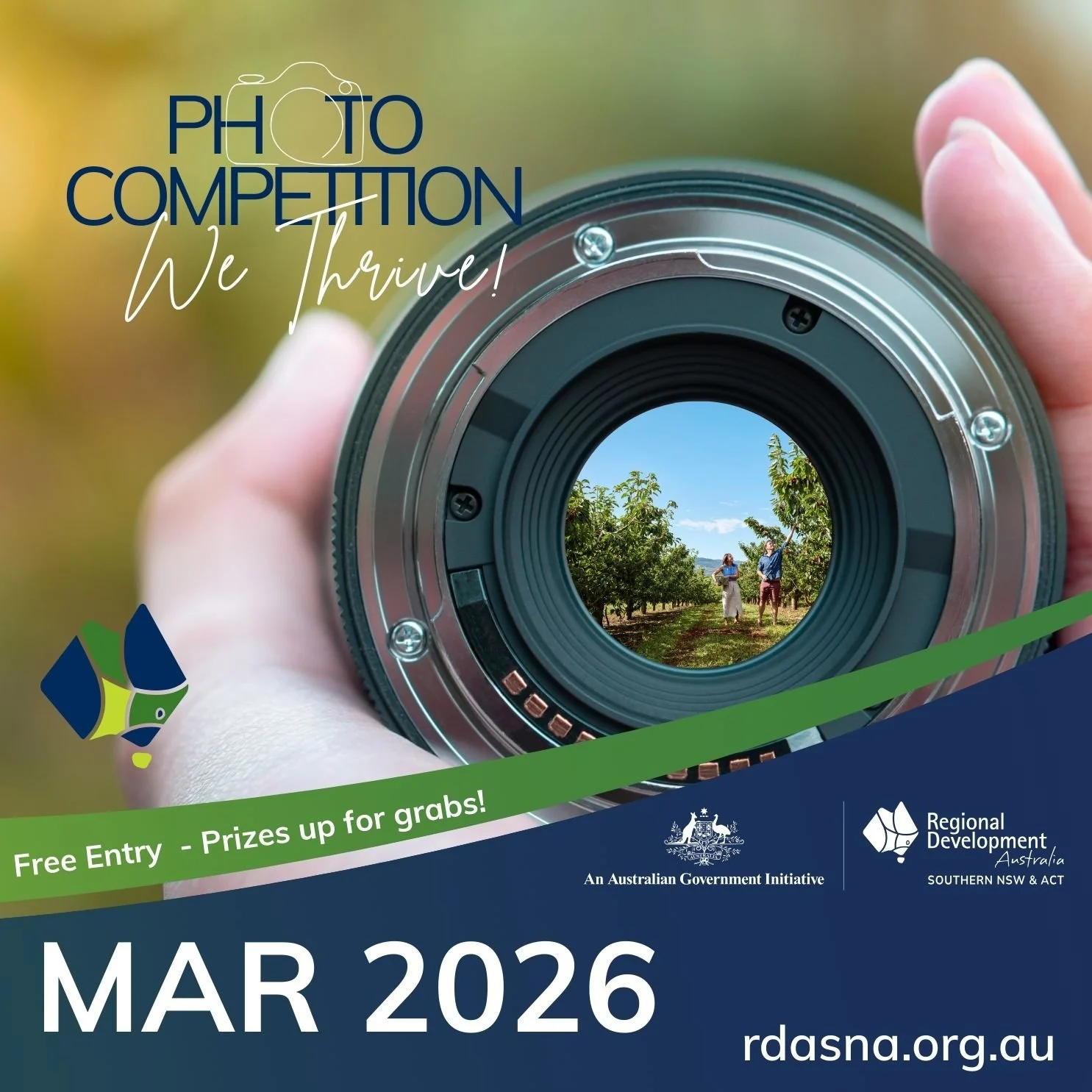The “We Thrive” photo competition shines a spotlight on the people, places, and industries shaping a brighter future for Southern NSW & the ACT. Supporting RDASNA’s vision for a dynamic and resilient regional economy, the theme highlights areas of growth, opportunity, and investment — and the everyday moments that show our region truly thriving.